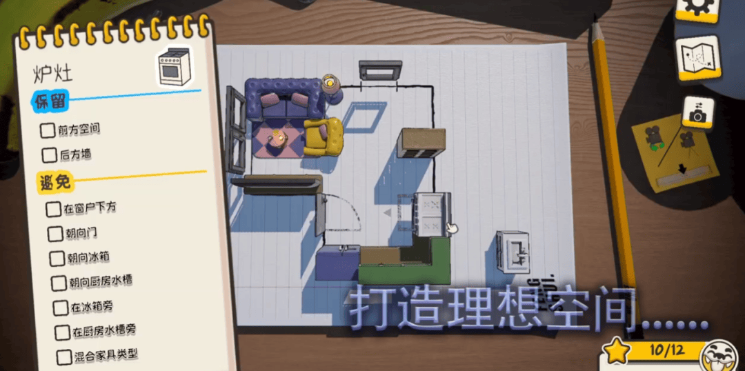 虽然单个家具的摆放初看之下还算容易,但就像现实里的家装设计一样,当你面对大小有限的空间,想要将数量繁多的家居同时收入其中,且在兼顾实际使用、美观度的同时还要考虑一系列匪夷所思的风水学规则,就知道这是一件多么消耗脑力的工作了。