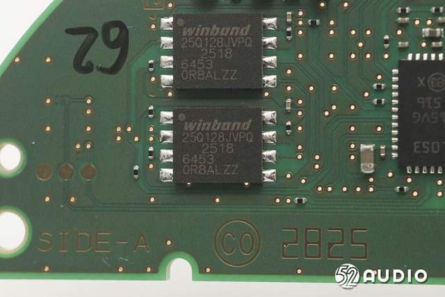 两颗Winbond华邦W25Q128JV串行NOR闪存,用于存储系统和数据。