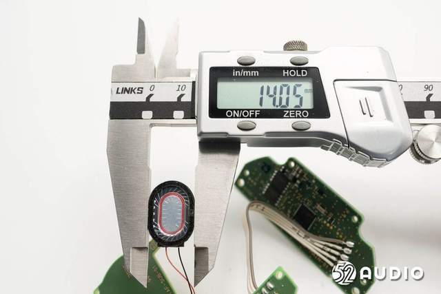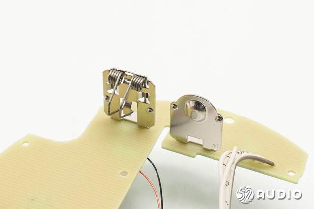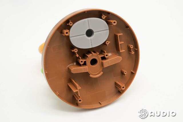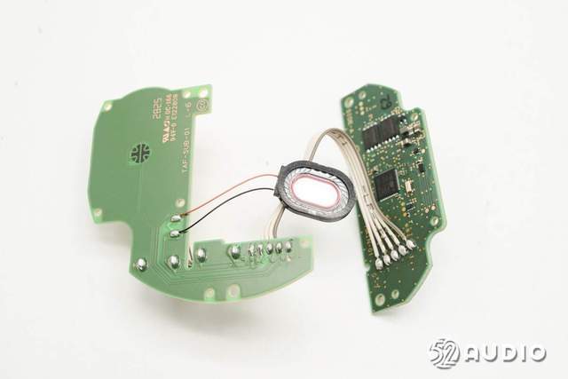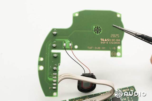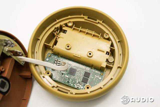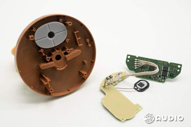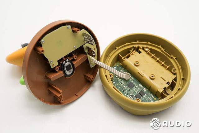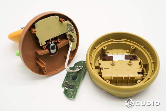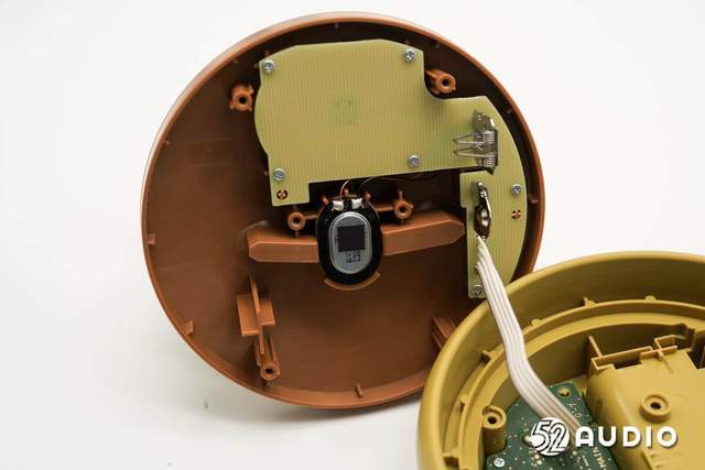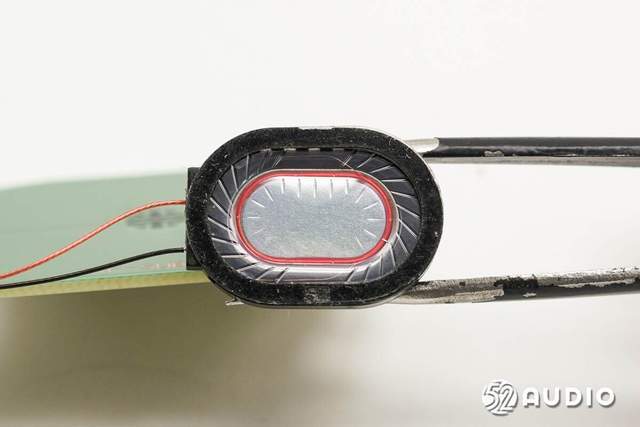 顶部盖板内侧结构一览,设置有扬声器和连接电池的电源输入小板。