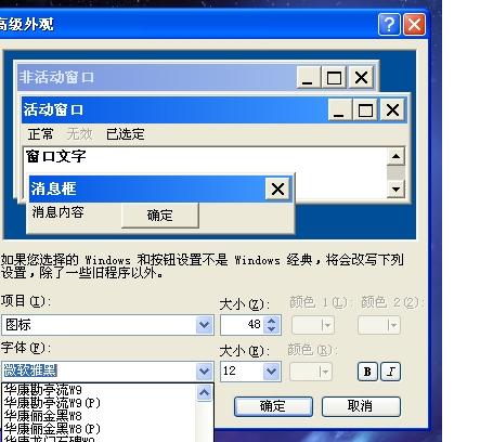 右键点桌面(属性)——外观(高级)——进去改,就可以了要你的字体了