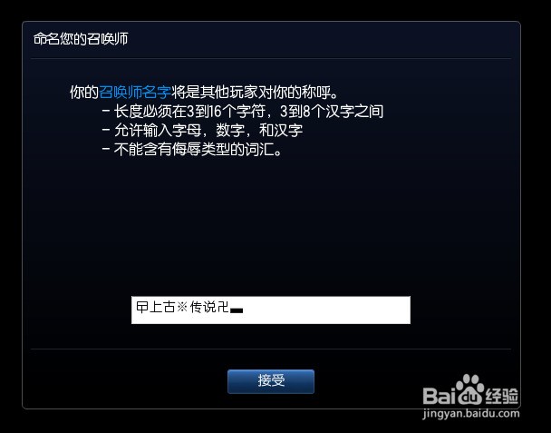 6.另外需要说明一点,首次进入某一大区时才可以修改召唤师名称。