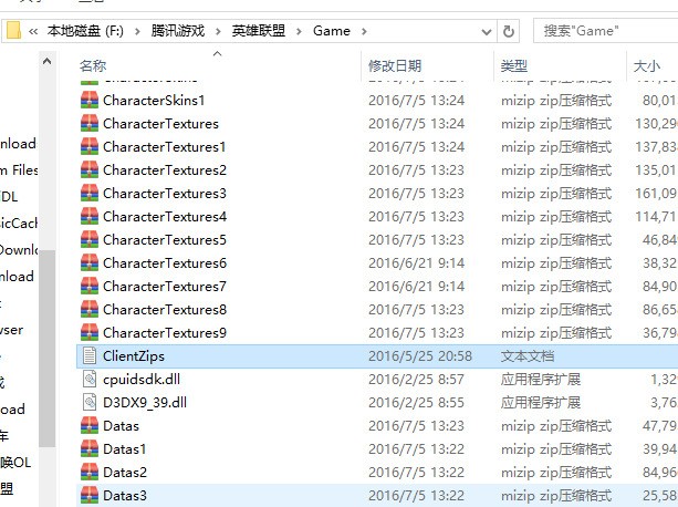 4、打开英雄联盟/game/clientzips.txt文档,在最后面粘贴压缩包名字。