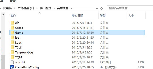 进入 英雄联盟 游戏目录后 打开 Game游戏目录