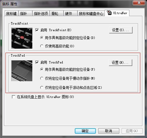 红框处,即可启用或禁用触摸板。上方还可选择指点杆是否启用。