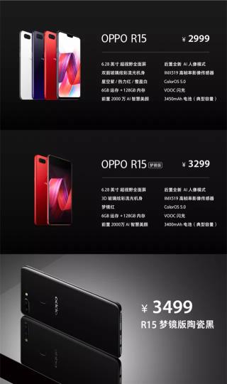 R15售价2999元,梦镜版梦境红3299元,梦镜版陶瓷黑售价3499元。