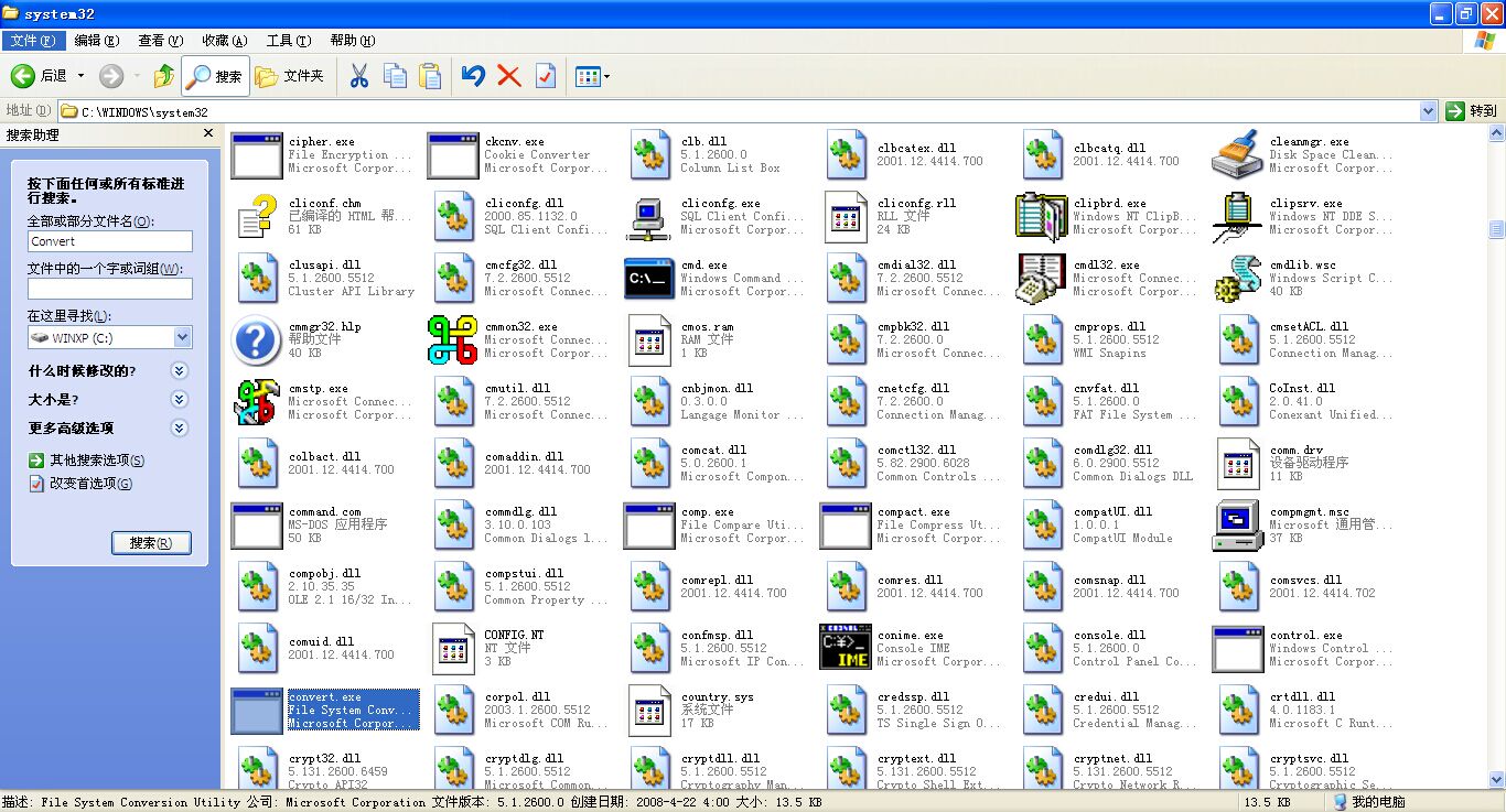 convert工具都在c:/windows/system32文件夹下面的,可以在这里打开,也可以在cmd命令里打开此工具的。
