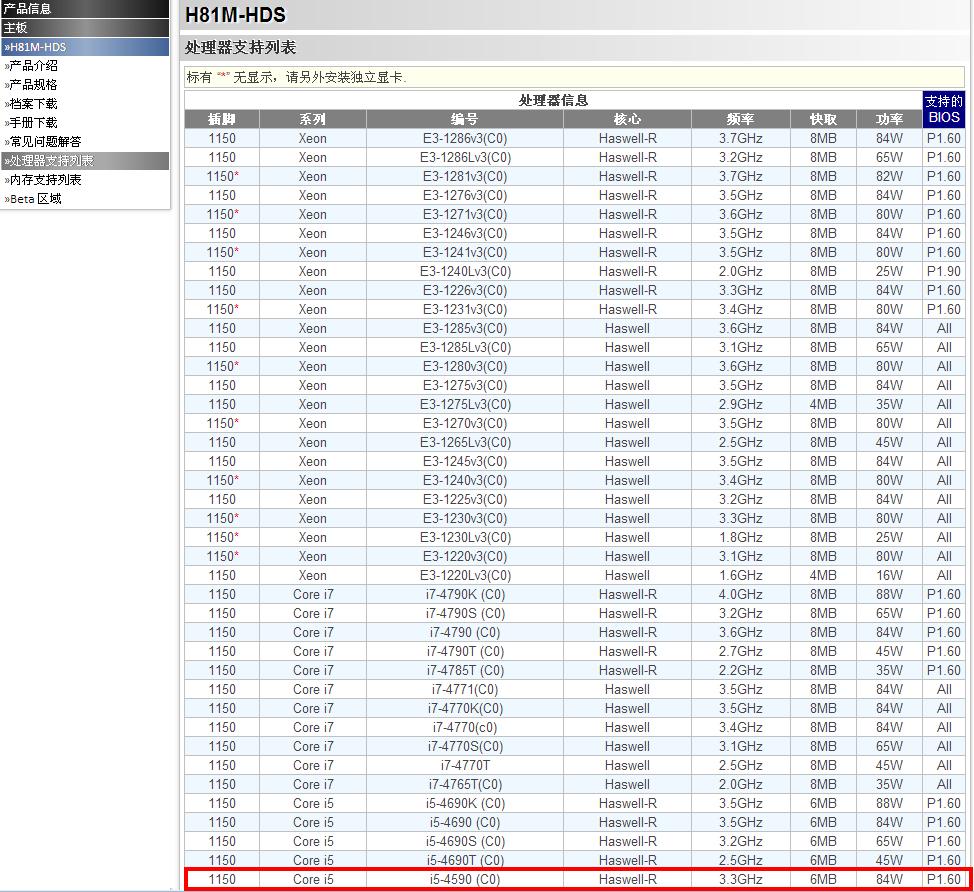 官网上i5-4590需要P1.60的BIOS才能支持,该版本的BIOS是2014年1月29日发布的