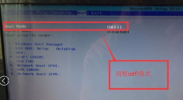 1、将大白菜uefi版u盘插入电脑,重启,按快捷键进入bios设置界面,将biso设置成uefi启动模式。