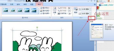 2.双击这张图片,word上面菜单栏会新增一个“格式”选项卡,点击“格式”选项卡中“大小”后面的黑色箭头