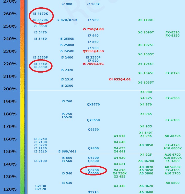 您看一下我这个CPU天梯图就知道 Q8200是什么档次了: