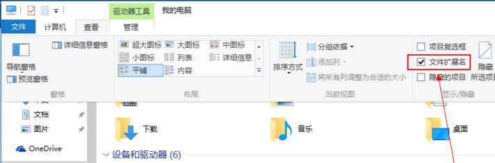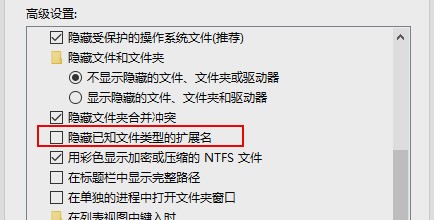 将下边隐藏已知类型文件的拓展名前边的勾去掉;
